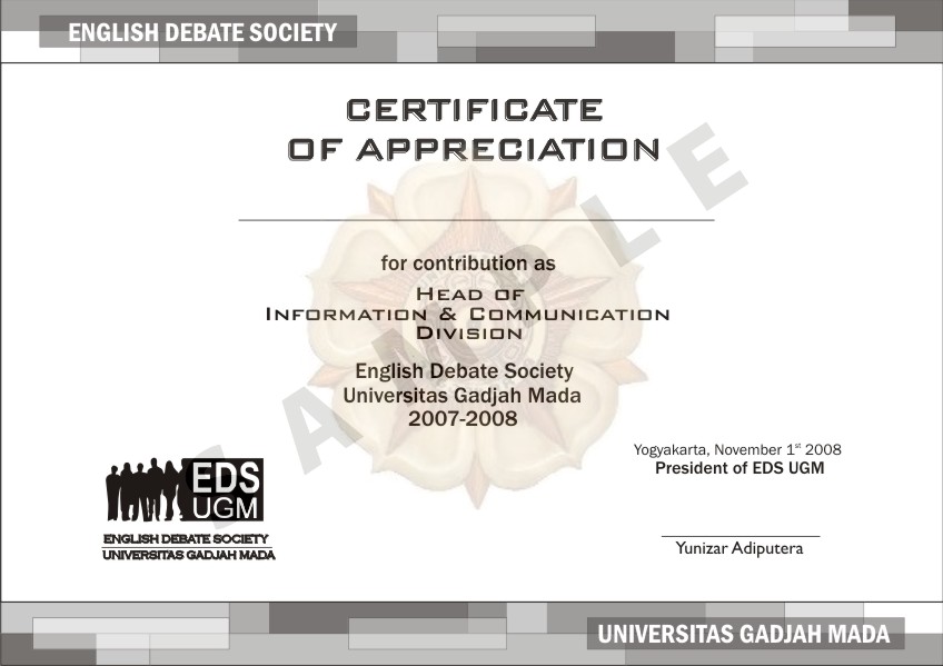 Certificate for EDS UGM